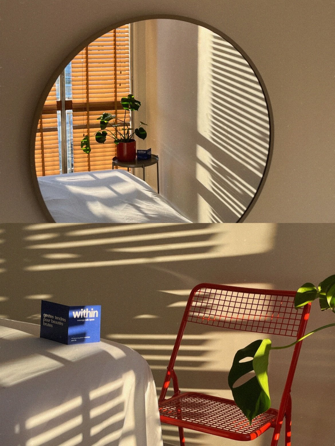 Studio de massage indépendant, singulier et incarné , within safe space porte une approche bienveillante et attentionnée du massage et du soin.
